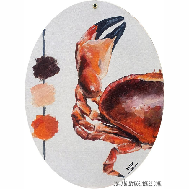 Tableau en peinture à l'huile représentant 1 tourteau de Mer sur un fond blanc.