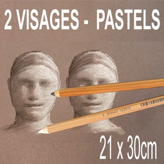 Réalisation de 1 portrait de 2 visages aux pastels sur papier dessin gris, format 21x30cm. Prix 120€.