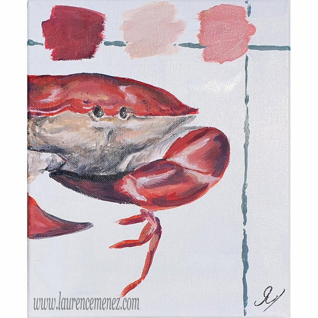 Tableau en peinture à l'huile représentant un Tourteau sur fond blanc.